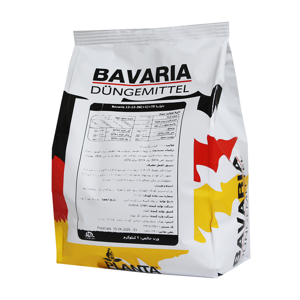 کود کامل 36-12-12 باواریا آلمان، در تمامی محصولات کشاورزی و به صورت کودآبیاری و محلولپاشی قابلیت مصرف دارد.