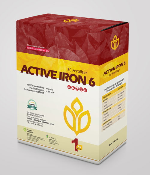 عناصر کلات شده به نسبت عناصر دیگر، راحت تر در اختیار گیاهان قرار می گیرند. کود اکتیو آیرون 6% کرسنت چین، عنصر آهن را به صورت کلات شده در اختیار گیاهان قرار می دهد. این نوع کود را می توان به صورت کود آبیاری و محلول پاشی در اختیار گیاهان قرار داد. آهن کلاته با EDDHA با ایزومر 0-0 در محدوده ph سه تا 12 پایدار است و به عنوان محافظ عننصر آهن تا رسیدن به ریشه استفاده می شود و بهتر است به صورت خاکی استفاده گردد.